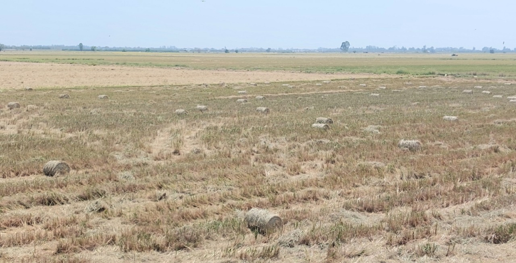 Ảnh: Đất ruộng sau thu hoạch lúa, còn nhiều rơm rạ và mặt đất chai cứng